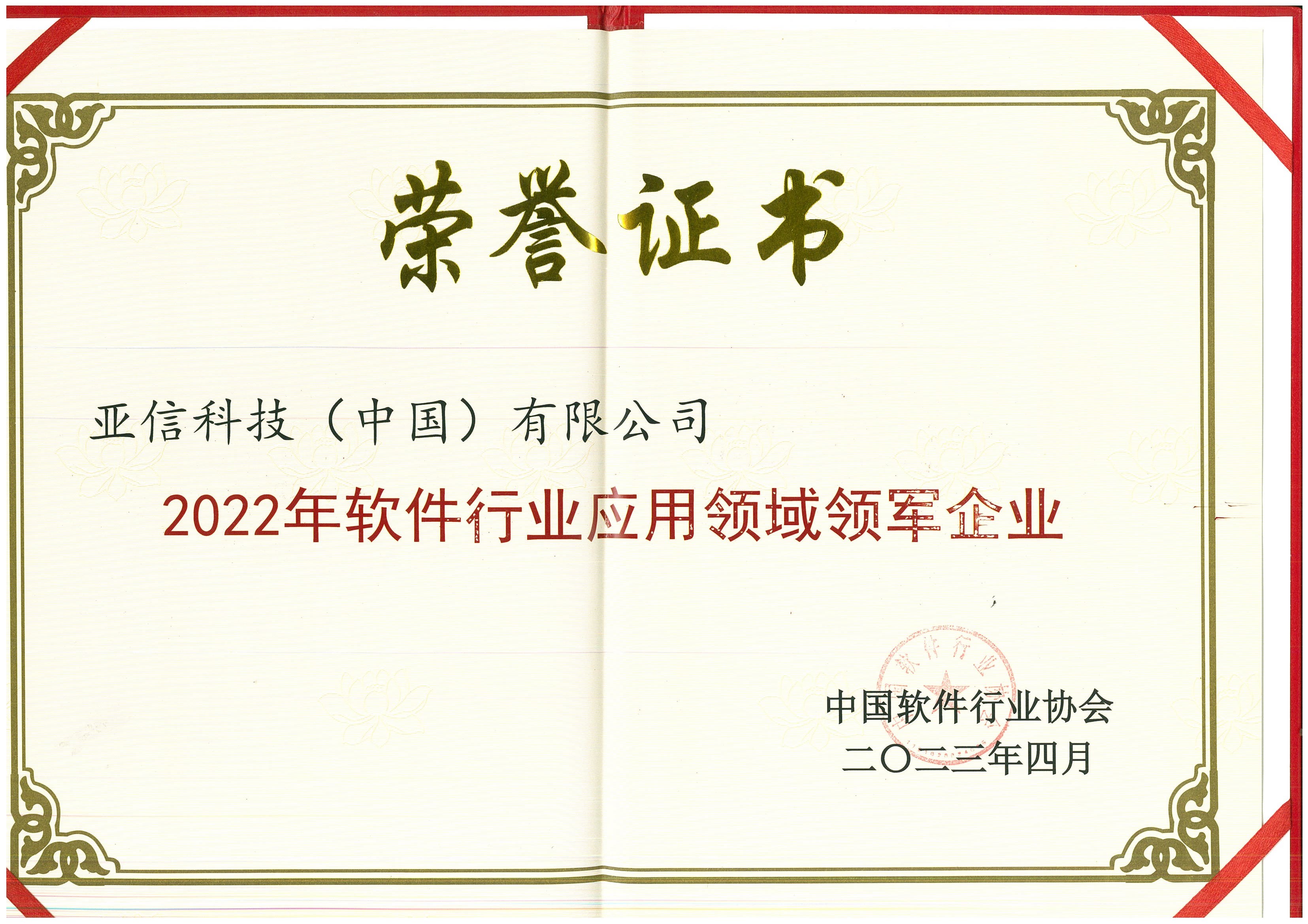 2023年4月 304am永利集团荣获“2022年软件行业应用领域领军企业”