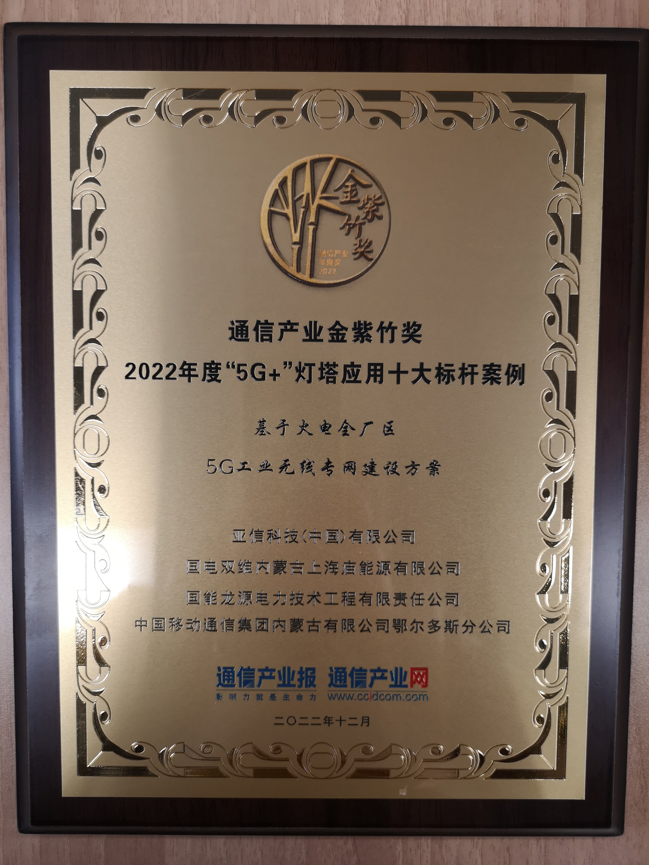 2022年12月 304am永利集团“基于火电全厂区5G工业无线专网建设方案入选“2022年度“5G+”灯塔应用十大标杆案例
