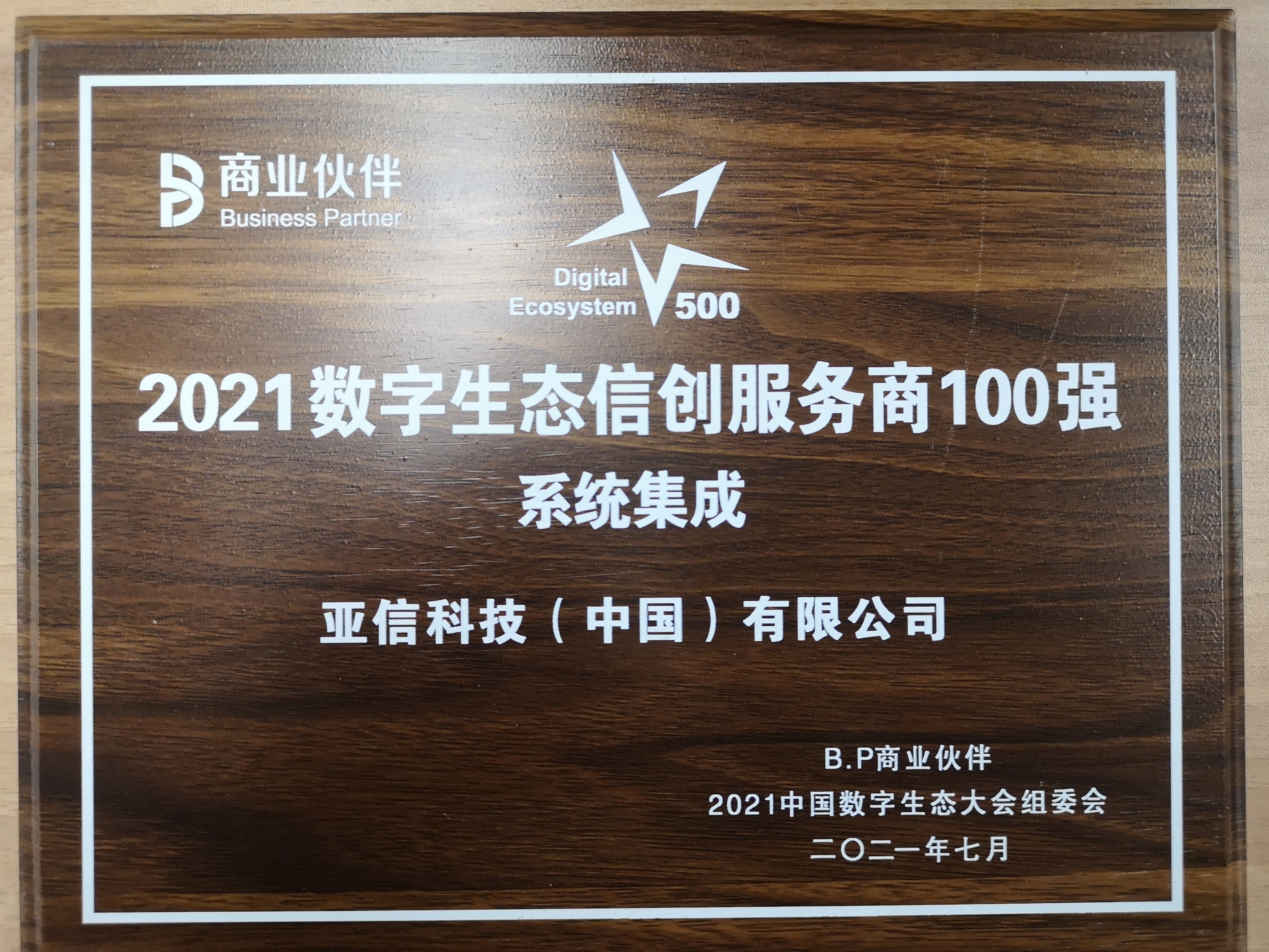 2021年7月 304am永利集团荣获“2021数字生态信创服务商100强”