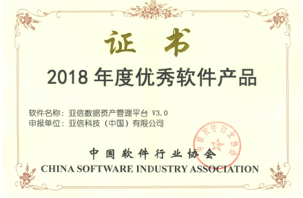 2018年6月亚信数据资产管理平台 V3.0荣获“2018年度优秀软件产品奖”
