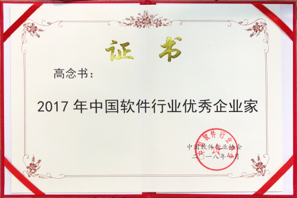 2018年1月高念书荣获“2017年中国软件行业优秀企业家”称号