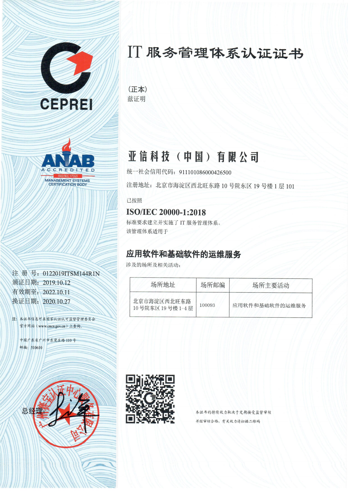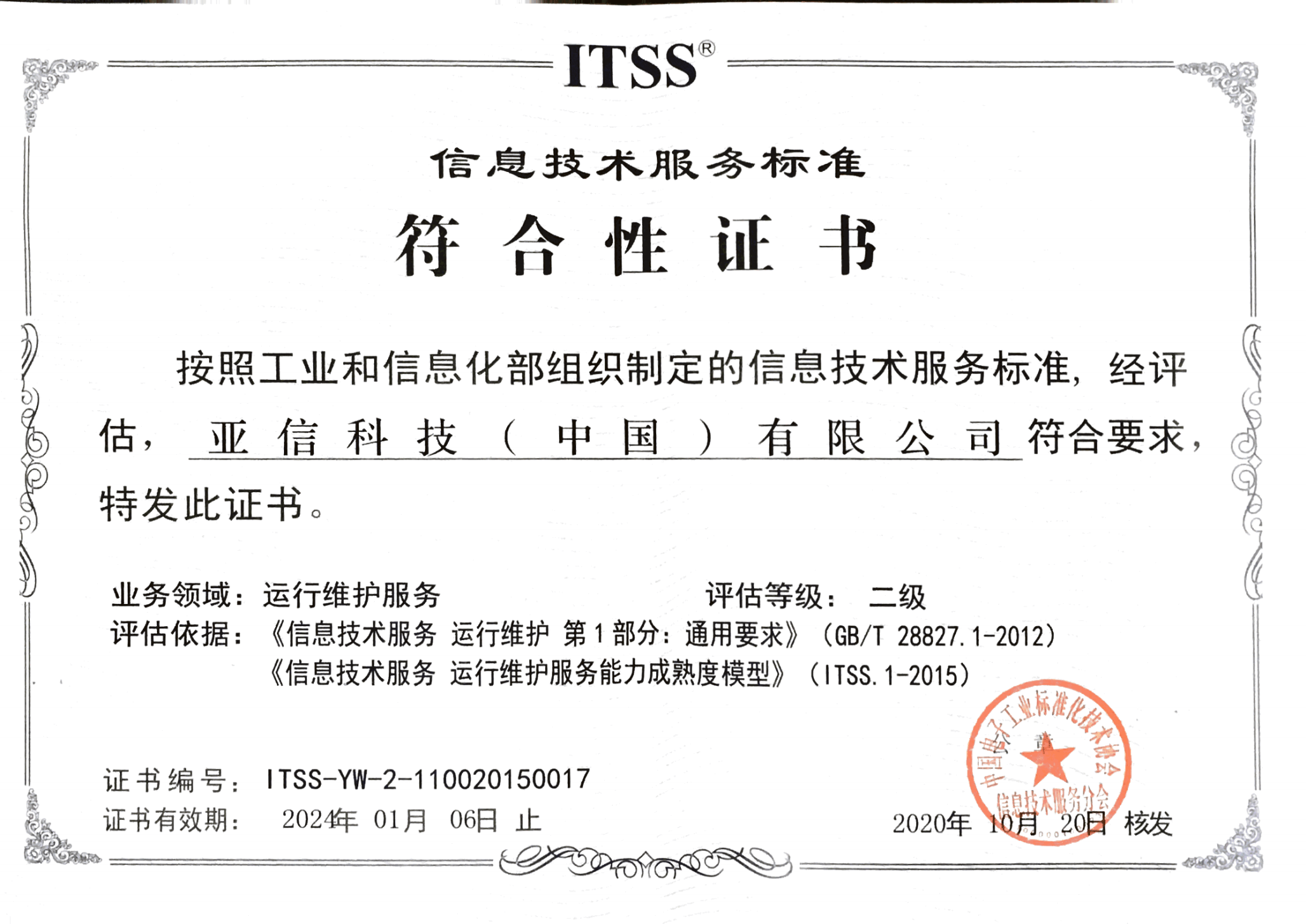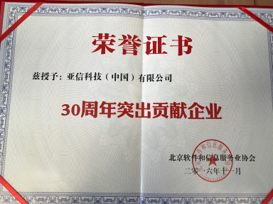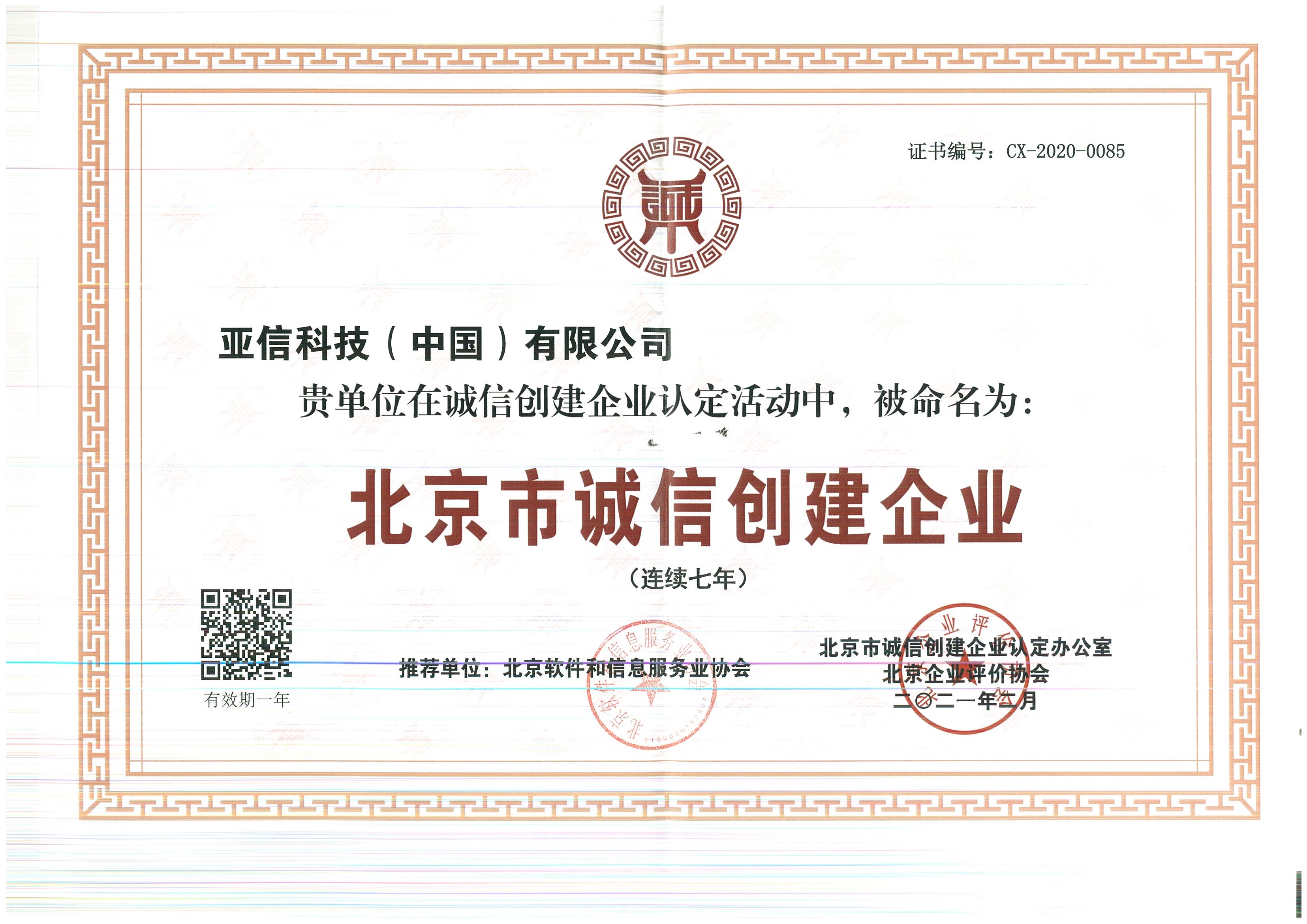 2017年7月亚信获得中国软件和信息服务企业AAA信用评级