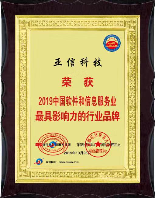 2019年10月 304am永利集团荣获“2019中国软件和信息服务业最具影响力的行业品牌”
